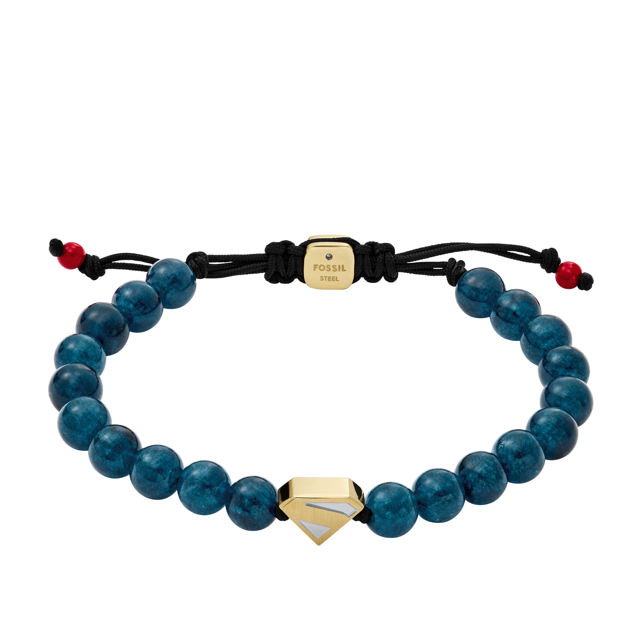 Superman x Fossil Navy Blue Stainless Steel Beaded Bracelet